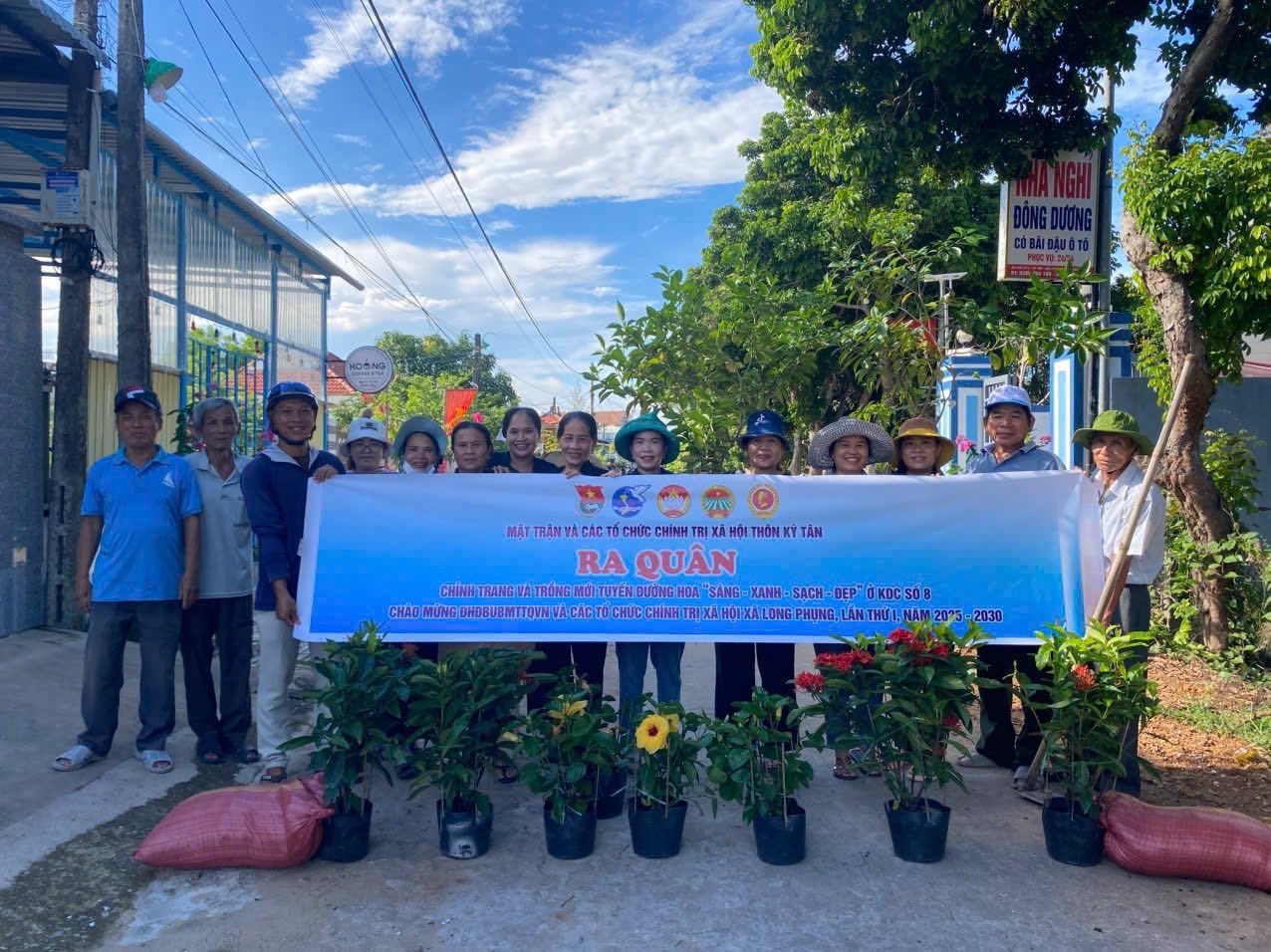 Ngày 20/9, Ban Công tác Mặt trận thôn Kỳ Tân phối hợp cùng các chi hội đoàn thể của thôn đã tổ chức ra quân chỉnh trang cảnh quan và trồng mới tuyến đường hoa tại Khu dân cư số 8. Trong không khí sôi nổi, cán bộ, hội viên, đoàn viên và đông đảo bà con nhân dân đã cùng nhau dọn dẹp vệ sinh, phát quang bụi rậm, thu gom rác thải, đồng thời trồng thêm nhiều loại hoa, cây xanh dọc hai bên tuyến đường.